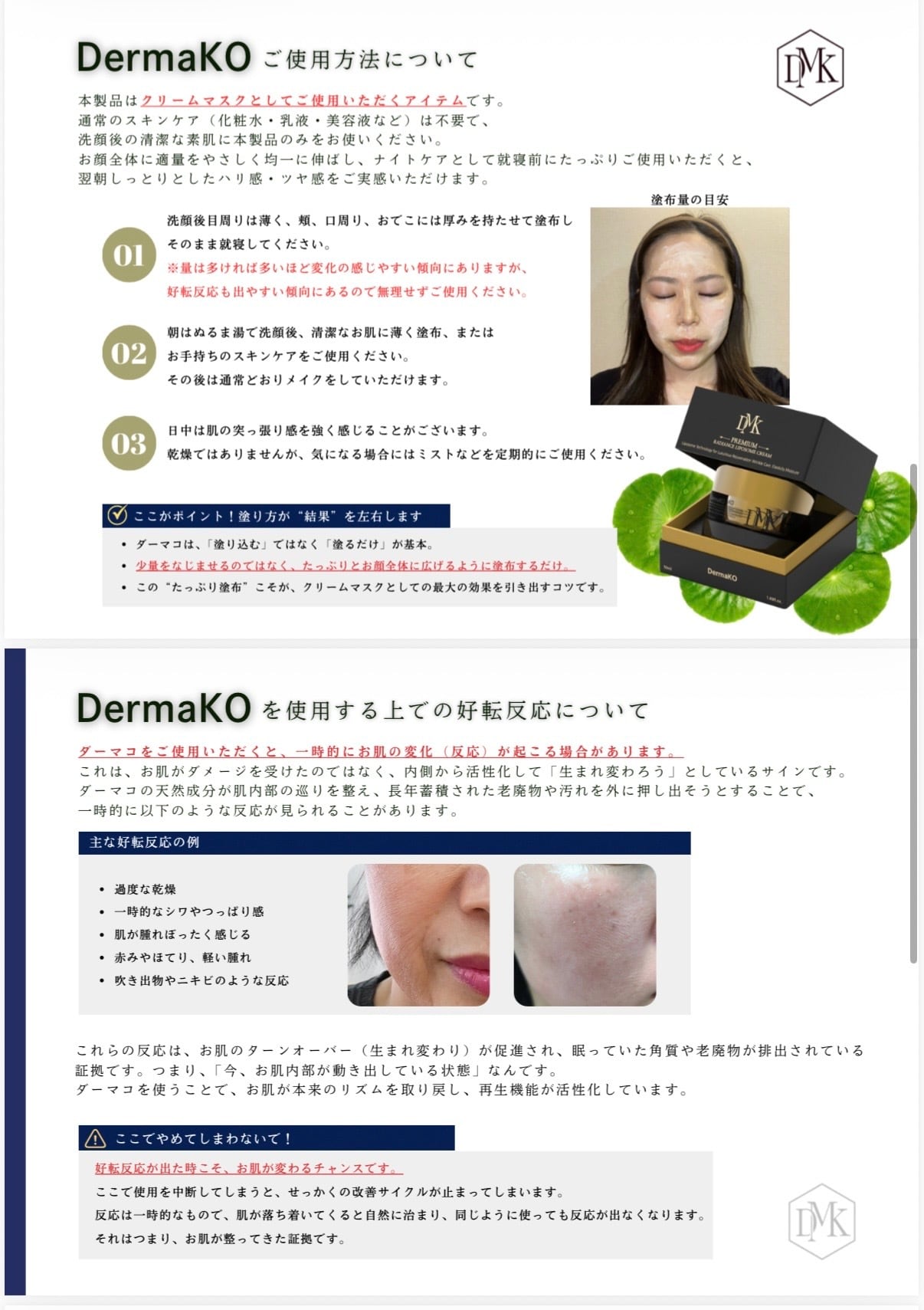 ◾︎ DermaKO 使用中に起こる一時的な肌変化について